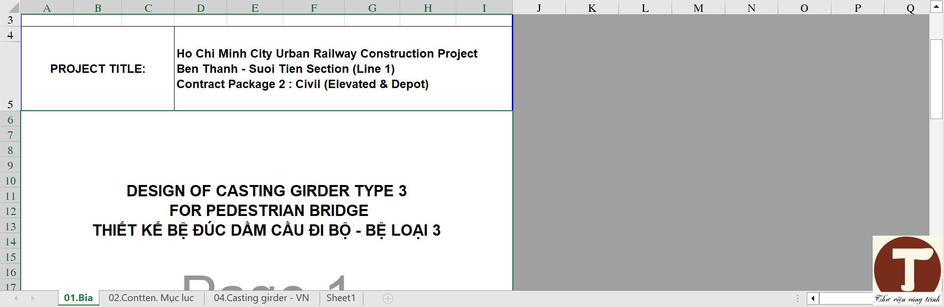 Bảng tính Bệ đúc dầm cầu đi bộ tuyến Metro Bến Thành – Suối Tiên .xls